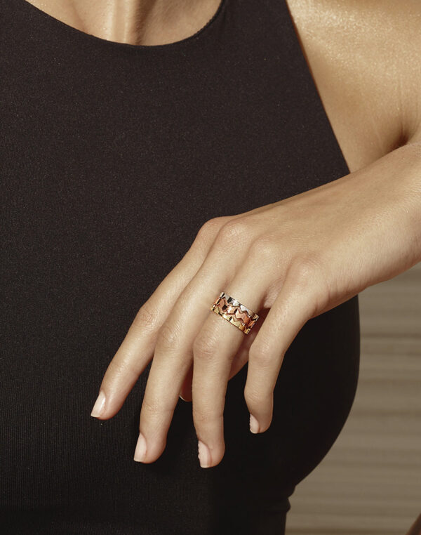 Anillo para hombre y mujer de la colección Capture Trilogy en oro amarillo, rosa y blanco de 18 quilates.