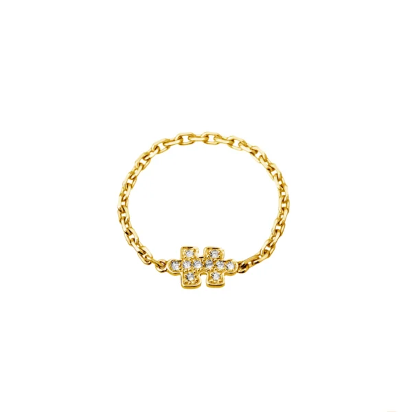 Akillis – Anillo Mini Puzzle Cadena, Oro Amarillo y Diamantes – Ref.: RMP0004 – Talla: 54