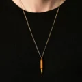 Collar para hombre y mujer de la colección Atracción Fatal en oro rosa de 18 quilates y aluminio anodizado naranja. El colgante está montado en una cadena doble de oro rosa de 18 quilates.