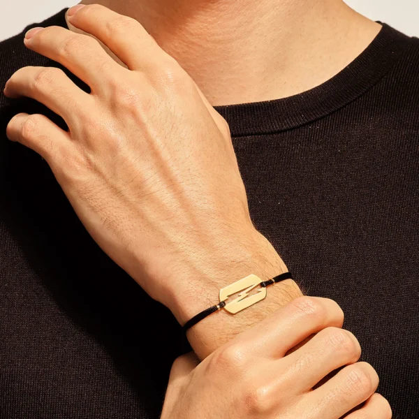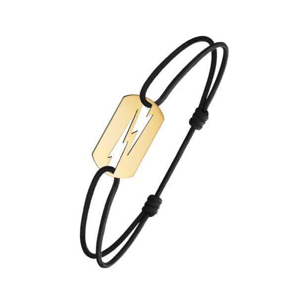 Pulsera de cordón negro para hombre y mujer de la colección Lovetag en oro amarillo de 18 quilates.