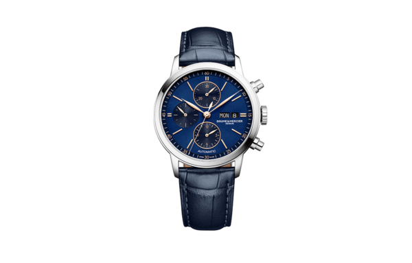El reloj Classima M0A10784 constituye un ejemplo de sofisticación gracias a sus elementos de diseño de minuciosa elaboración. Su esfera lacada azul con acabado satinado «soleil» se complementa con subesferas azul oscuro y delicados detalles dorados que refuerzan su elegancia. La presencia de refinados índices y agujas hoja dorados añade un toque de lujo, mientras que las ventanillas del día y la fecha a las 3 horas mejoran su funcionalidad. En una caja de 42 mm en acero inoxidable pulido con cristal de zafiro irrayable, la durabilidad del reloj está asegurada. Su movimiento automático ofrece una frecuencia de 4 Hz, una reserva de marcha de 48 horas y un rendimiento fiable. Hermético hasta 5 ATM, es ideal para el uso diario. Se acompaña de una correa de piel de aligátor azul con cierre de acero inoxidable intercambiable que brinda comodidad y seguridad.