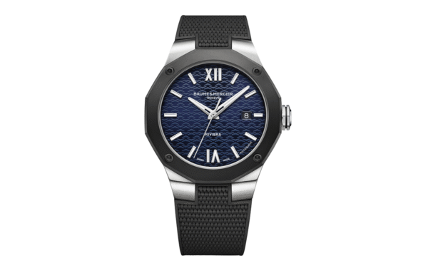 El Riviera renace de nuevo este año en tonos sutilmente oscuros mediante una variación del Riviera Automático «Swiss Made» de 42 mm con caja de acero y esfera azul oscuro, así como una correa intercambiable de caucho negro. El bisel de acero ADLC arenado fijado a la caja mediante cuatro tornillos funcionales da a este diseño contemporáneo un aspecto furtivo y contundente. Su pedigrí deportivo es incontestable. Lo modera sutilmente una esfera en un bello azul oscuro lacado, con una decoración ondulada tono sobre tono, así como números romanos e índices.