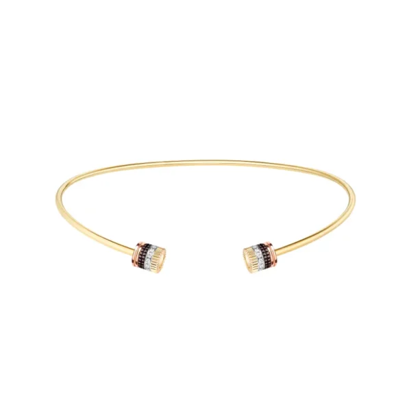 La colección Quatre Classique reinterpreta el imponente collar torque, realzándolo con dos motivos Quatre en los extremos. Sin cierre y fácil de poner, esta pieza encarna la filosofía Boucheron con estilo y creatividad.