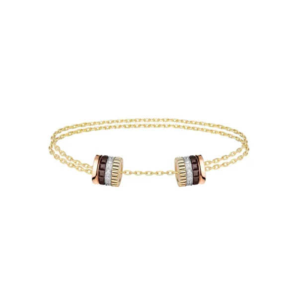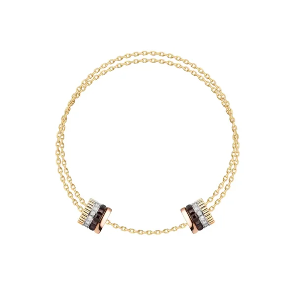 Desde 2004, la colección Quatre se ha renovado constantemente para adaptarse a tu estilo. La creatividad sin límites es la esencia de la colección. Desliza los motivos Quatre en esta pulsera de oro amarillo para ajustar el diseño a tu muñeca.