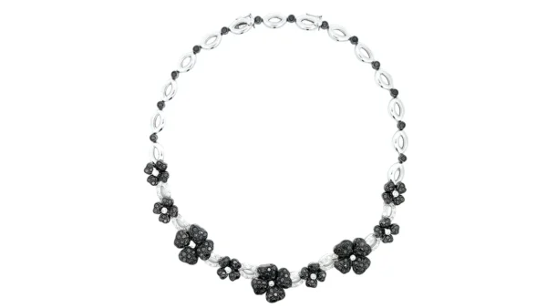 Collar realizado en oro blanco engastado con diamantes blancos y negros.