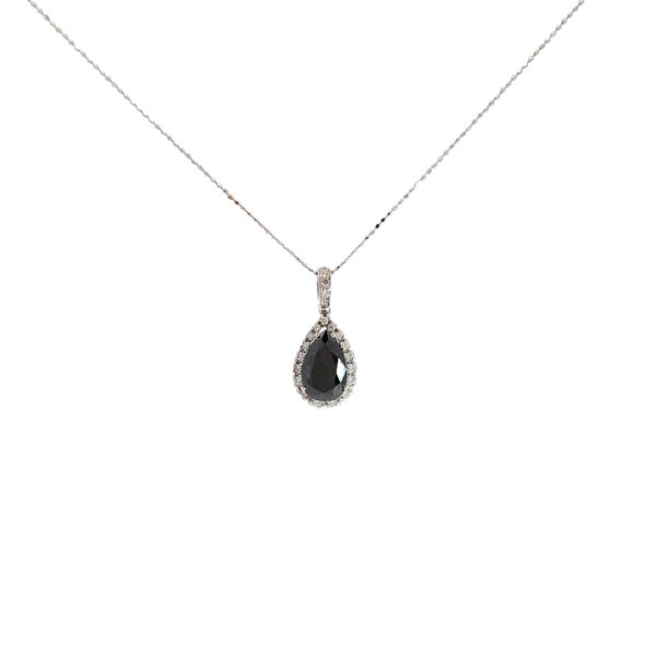 Colgante realizado en oro blanco engastado con diamantes blancos y negros. Cadena de oro blanco.