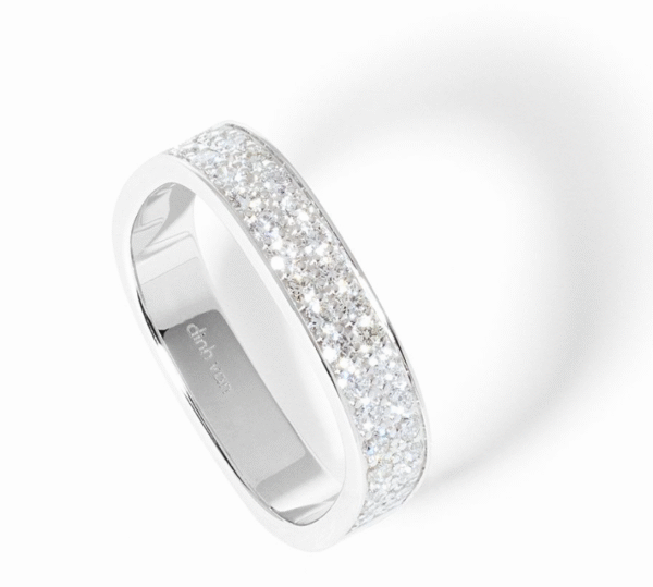 Anillo cuadrado de oro blanco de 18 quilates de 4 mm con diamantes. Elegante y moderna, la alianza simbólica de dinh van es intemporal.