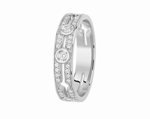 La colección Pulse se inspira en la música actual. Como una pulsación, los diamantes son propulsados de un espacio a otro creando así una lluvia de diamantes.