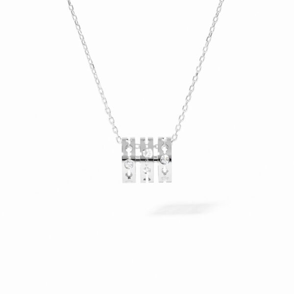 Compuesto por una cadena de oro amarillo y un colgante móvil de forma cilíndrica, este collar Pulse seduce por su diseño escultural y geométrico, fiel al código de la Casa dinh van.