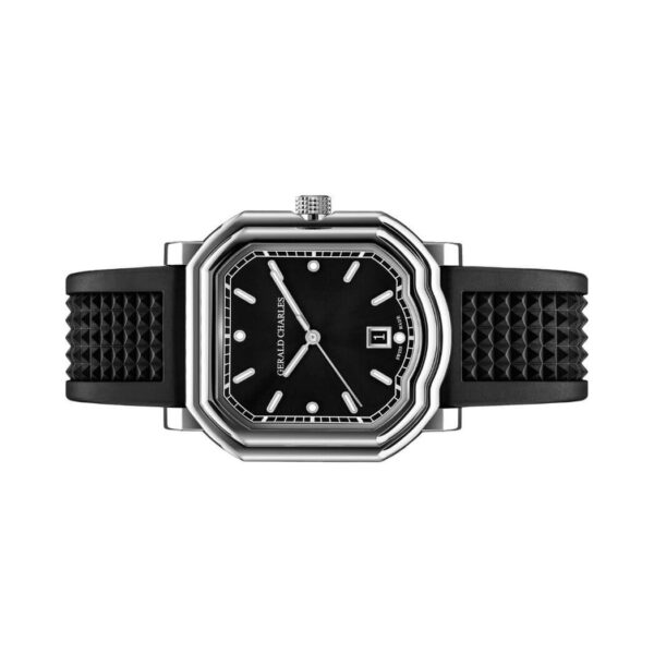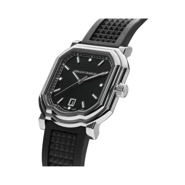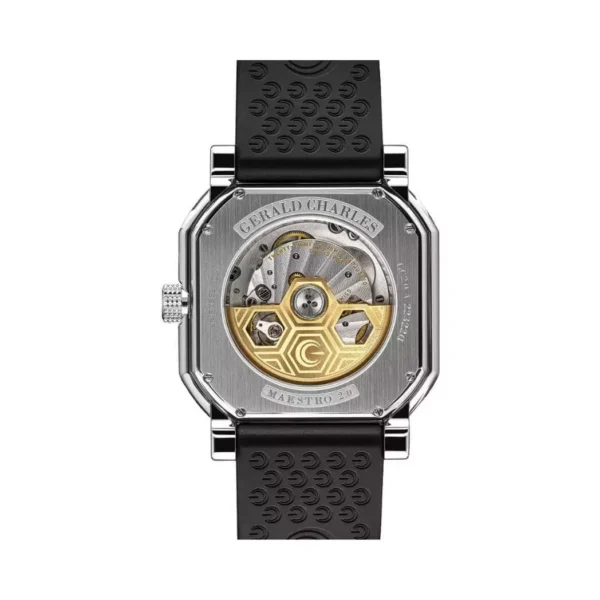 Gerald Charles Maestro Original Time GC2.0-A-00 Este reloj cuenta con una caja de acero inoxidable con forma de polígono asimétrico y bordes suaves (diseño original «Maestro» del Sr. Gerald Charles Genta) y una esfera negra