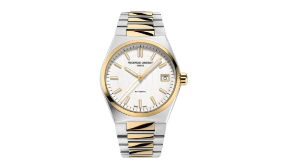 Realizado en acero y chapado oro amarillo con esfera plata, es un modelo clásico, deportivo y moderno. El brazalete se puede cambiar fácilmente por la correa de caucho que se entrega con el reloj. La ausencia de asas permite una mayor flexibilidad y ayuda a un ajuste natural en la muñeca.
