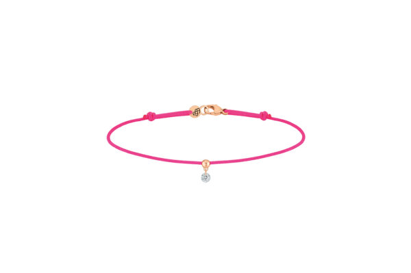 La pulsera cordón de la colección BB en oro rosa de 18kt tiene un diamante natural de 0.07 quilate.
