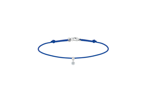 La pulsera cordón de la colección BB en oro blanco de 18kt tiene un diamante natural de 0.07 quilate.