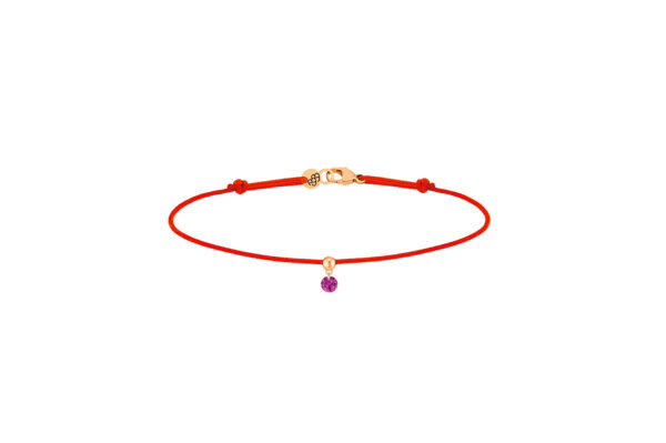 La pulsera cordón de la colección BB en oro rosa de 18kt tiene un rubí natural de 0.15 quilate.