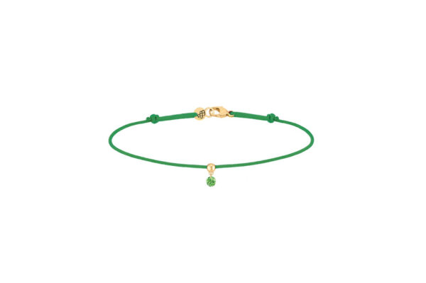 La pulsera cordón de la colección BB en oro amarillo de 18kt tiene un tsavorita natural de 0.13 quilate.