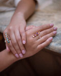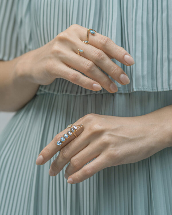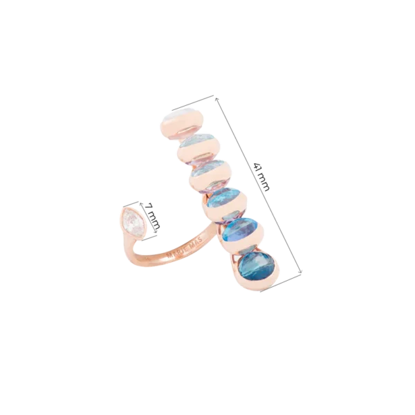 Con cada movimiento de la mano, el lado morado se invierte para revelar diferentes tonos de azul. Este delicado anillo está elaborado en oro rosa de 18 quilates.