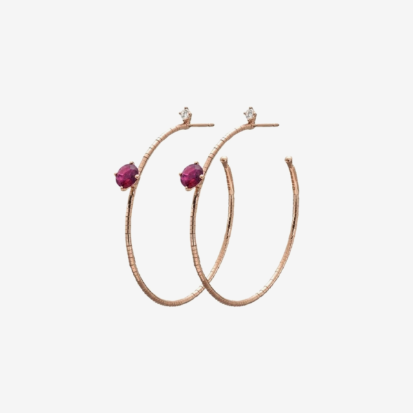 Pendientes de aro Mattia Cielo Rugiada de oro rosa de 18 quilates, titanio, diamantes y turmalina rosa