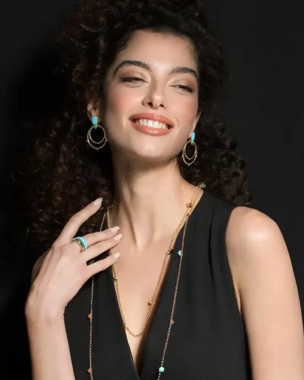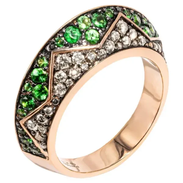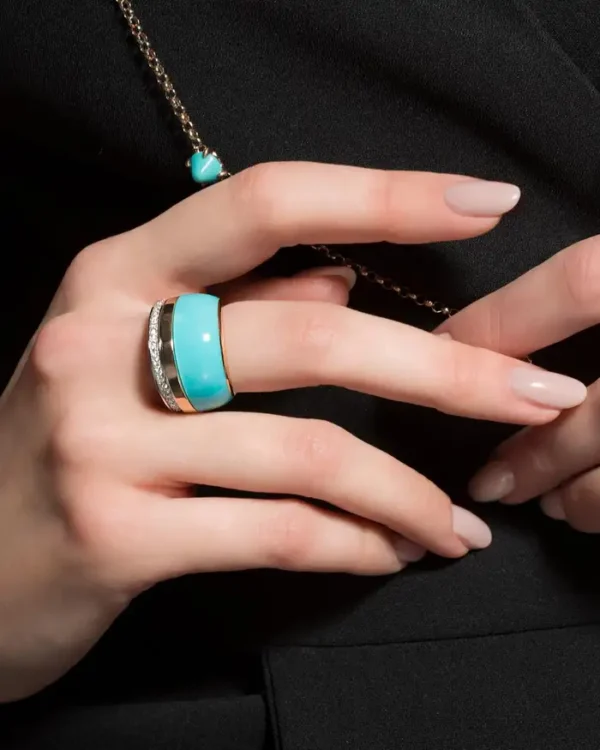 Oro Rosa de 18 quilates, Diamantes Marones 035cts,Blancos 0,36cts, Tsavoritas y Turquesa