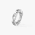 Compaginar modernidad y atemporalidad: la apuesta ganada de Valérie Messika con el anillo de diamantes Move Link Multi. Con la repetición del motivo icónico Move Uno y el brillo del oro blanco, este anillo de lujo seducirá a las mujeres con gusto por las joyas gráficas y modernas. Diseño emblemático de la Maison de joyería y Alta Joyería Messika, los diamantes en movimiento vestirán su mano con un toque luminoso único. Un anillo para mujer para llevar sin moderación, solo o combinado.