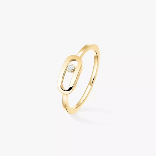 Este anillo Move Uno supone el gran regreso del oro amarillo. Elaborado a mano y engastado con un diamante talla brillante que sigue el ritmo de los movimientos, este anillo con diamante forma parte de la colección de joyería Move, todo un icono de la Maison Messika. Tanto si opta por un look minimalista luciendo este modelo solo como si prefiere un look más moderno combinándolo con otras joyas de diamantes de la Maison, este anillo de lujo se convertirá rápidamente en un aliado indispensable del día a día.