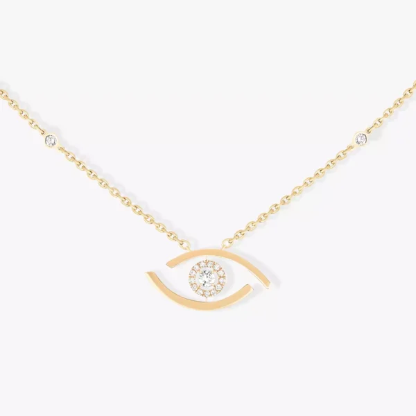 Como un guiño a la supersticiosa que todas llevamos dentro, Valérie Messika ha creado el collar de diamantes en oro amarillo Lucky Eye. El amuleto del ojo se reinterpreta en una versión totalmente elaborada a mano. Este collar de diamantes para mujer encierra en su seno un diamante talla brillante y una deslumbrante aureola. Tanto si se luce en solitario como combinado con otras piezas según la tendencia de la acumulación de joyas, ideal para realzar la piel bronceada durante el verano, este collar de diamantes resultará perfecto para realzar la belleza del escote.