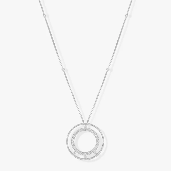 Presentado en una versión con pavé de diamantes, este collar largo con diamantes y pavé en oro blanco de 18 quilates forma parte de la colección de joyería Move Romane. Gráfico y luminoso, el brillo del oro blanco refuerza la pureza de los diamantes, acentuando así su magnífico esplendor. Asimismo, la joya lleva el sello Move: los tres diamantes con engastado cerrado están en movimiento. Cómodo de llevar, este collar de diamantes para mujer hace gala de un rasgo singular: se puede ajustar modificando su longitud gracias a un sistema deslizante presente en la cadena. Ingenioso, ultramoderno y elegante, luzca este collar largo con diamantes y pavé en oro blanco con todos sus conjuntos de día y de noche. ¡Una joya de diamantes de la que no podrá separarse!
