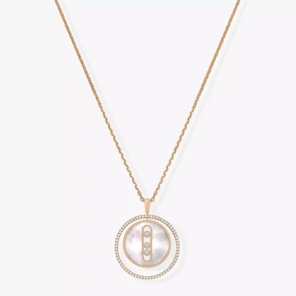 Tras haberse liberado de los códigos clásicos relacionados con las medallas de estilo vintage, Valérie Messika nos ofrece una colección de joyería gráfica y moderna. En esta extraordinaria versión, la creadora combina su preciosa medalla en oro rosa y diamantes con el nácar blanco, sinónimo de pureza. Con este collar de lujo, tendrá la absoluta certeza de realzar cualquier conjunto, ya sea más formal o más atrevido. Para dar a este collar de diamantes en oro rosa y nácar blanco un toque aún más personal, solicite el grabado de una o varias palabras, como una fecha, las iniciales o un recuerdo simbólico, en su reverso. Descubra este collar de diamantes en oro rosa y nácar blanco en exclusiva en las boutiques Messika.