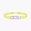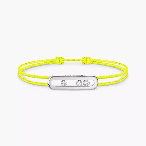 Alegre e intensa, la pulsera de cordón amarillo fluorescente y oro blanco Messika CARE(s) revisita el motivo Move en una radiante combinación de color y oro. Con sus tres diamantes en movimiento y su deslumbrante cordón, esta pulsera de cordón con diamantes en oro blanco es el toque de luz perfecto para llevar a diario. Doblemente preciosa, la línea Messika CARE(s) es una colección de joyas solidaria. Por cada joya de oro y diamantes vendida, una parte de los beneficios se dona a través de la Fundación Valérie Messika a asociaciones y ONG internacionales que trabajan en favor de la infancia en los ámbitos de la educación y la salud.
