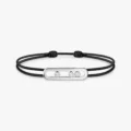 Tres diamantes en movimiento para iluminar cualquier gesto, esta pulsera de diamantes de oro blanco con cordón negro forma parte de la colección solidaria MESSIKA CARE(s). Por cada pieza vendida de esta colección de joyas, parte de los beneficios se donan a través de la Fundación Valérie Messika a asociaciones y ONG que trabajan en favor de la infancia en los ámbitos de la educación y la salud. Una pulsera de cordón de diamantes de gran simbolismo que retoma el motivo Baby Move en una versión unisex informal y elegante. Fácil de llevar, sus eslabones ajustables facilitan su adaptación a cualquier muñeca.