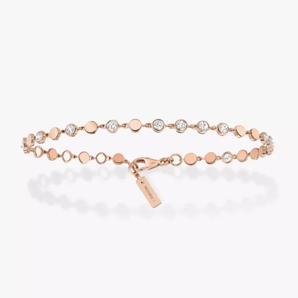 ¿Ganas de una pulsera elegante para utilizar a diario? La pulsera D-Vibes en oro rosa y diamantes es lo que buscaba. Inspirada en los modelos rivière clásicos, esta pulsera de lujo es una reinterpretación moderna y enérgica del imprescindible de los joyeros. Gracias a su alternancia de motivos en oro y diamantes, esta pulsera se adaptará a todos sus conjuntos, desde los más formales hasta los más informales. Llévela en solitario para lucir un look minimalista, o en combinación con otras joyas de diamantes Messika para optar por un look ultramoderno.
