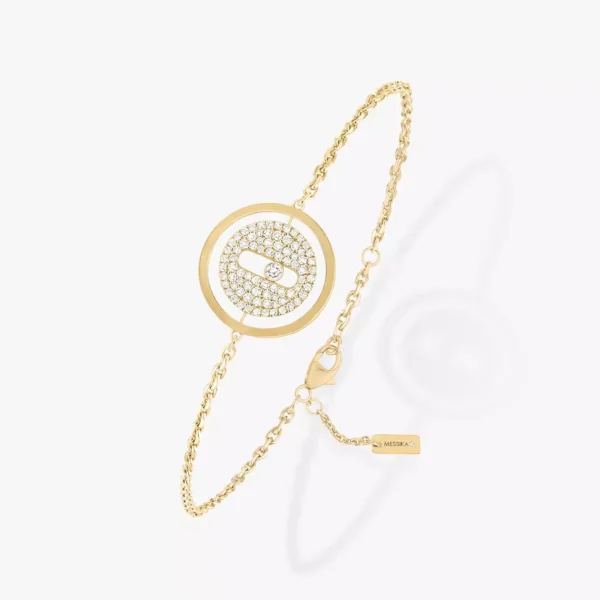 Una vez más, Valérie Messika reinterpreta los códigos clásicos de la joyería para insuflarles un giro moderno. La nueva colección Lucky Move reinterpreta la medalla en clave depurada y minimalista. Entre deseo y talismán, esta pulsera de cadena con diamantes en oro amarillo dará un giro elegante a su estilo. Nuestro consejo de estilo: esta joya tipo amuleto se lleva sola o mezclada con otros modelos de la colección, como la pulsera de cadena con diamantes sin pavé Lucky Move, para conseguir un efecto de eco.