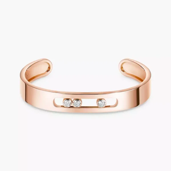Valérie Messika ha diseñado una nueva pulsera rígida semiabierta para mujer y hombre. La pulsera de diamantes Move Joaillerie, una pieza de carácter con líneas atemporales, ilumina las muñeca con intensidad. Nos encanta su estilo poderoso pero refinado, que se adapta sin esfuerzo a cualquier silueta. El oro rosa pulido efecto espejo aporta un ligero toque de suavidad y originalidad. Los tres diamantes móviles tienen una poderosa presencia y seguirán todos sus movimientos con resplandor. Esta esclava de diamantes, que se ajusta perfectamente a la muñeca, será su compañera inseparable durante todo el día.