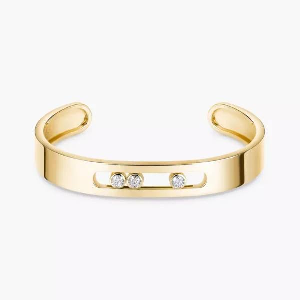 Valérie Messika ha reinventado sus piezas icónicas, diseñando una esclava mixta con líneas atemporales. No pueden faltar en su joyero. Nos encanta su estilo fuerte y refinado. La vitalidad del oro amarillo pulido efecto espejo y el brillo de los diamantes aportan un toque de brillo a la silueta. Las tres piedras móviles de esta escultural cápsula de oro amarillo tienen una poderosa presencia y seguirán todos sus movimientos. Semiabierta, la pulsera Move Joaillerie se pone y se quita en un abrir y cerrar de ojos. Se ajusta perfectamente a la muñeca y será su compañera inseparable durante todo el día.