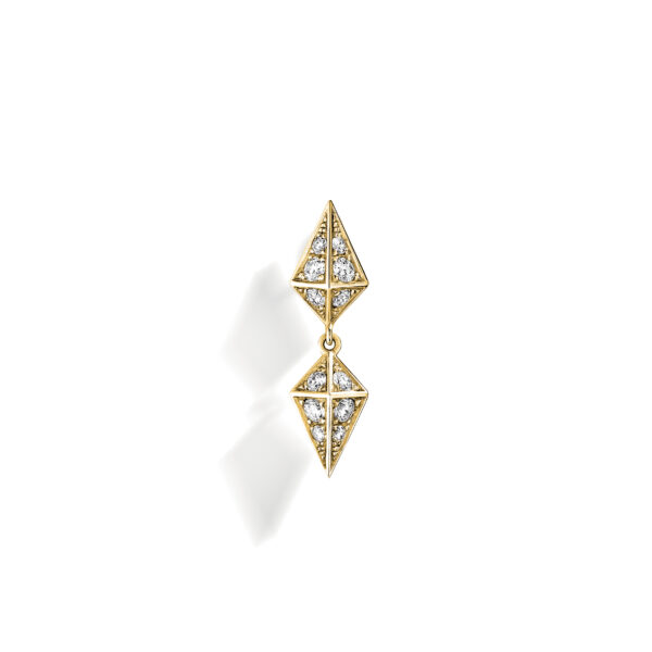 Pendiente Rockaway en oro, engastado con 12 diamantes talla brillante, calidad G-VS, de 0,28 quilates. Tamaño : 2cm x 0,6cm.