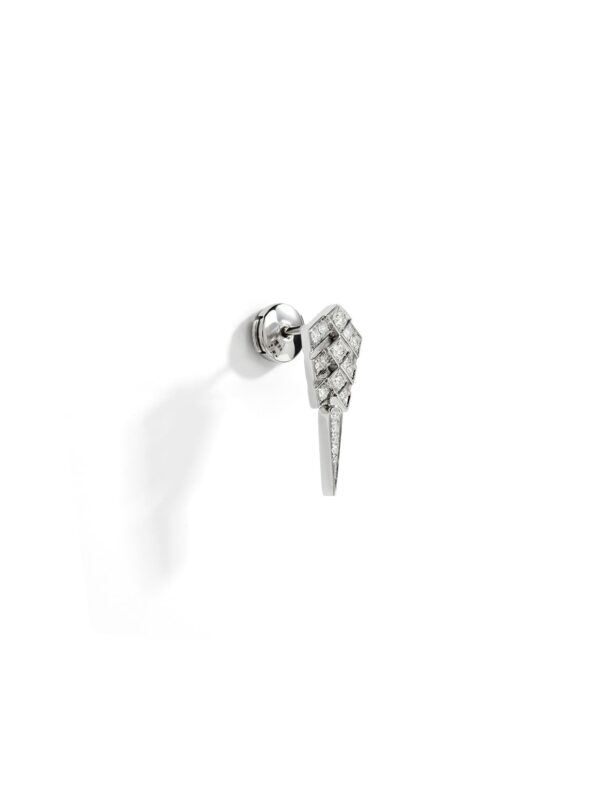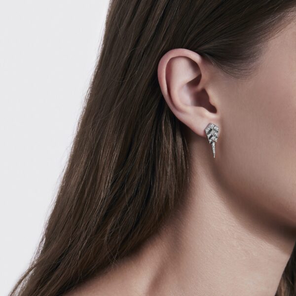 Pendiente Stairway S de plata de primera ley con baño de rodio, engastado con 18 diamantes talla brillante calidad G-VS, con un total de 0,22 quilates. Tamaño : 2,2 cm x 0,9 cm.