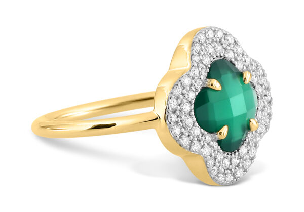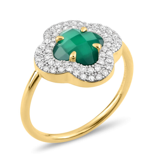 MORGANNE BELLO – Anillo Victoria, Ágata Verde y Doble fila de Diamantes – Talla: 52
