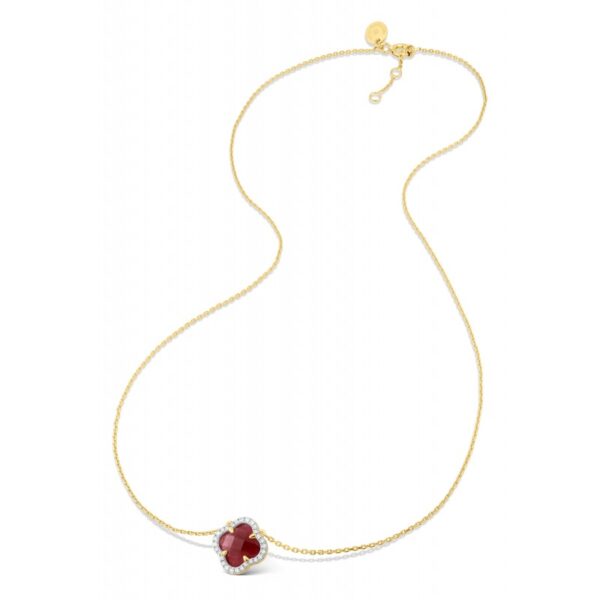 Detalles: Collar Victoria Diamonds en oro amarillo de 750, mini motivo de cuarzo rojo (1,124 quilates) y diamantes (0,096 quilates).