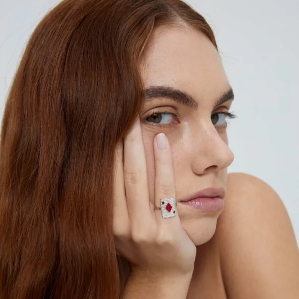 El anillo PINKIE HONNEUR es mucho más que un simple adorno. Fabricado en Francia con diamantes cultivados en laboratorio y laca, encarna el compromiso de MYSTERYJOY con la joyería ética y sostenible.