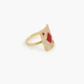 El oro amarillo de 18 quilates está adornado con brillantes diamantes cultivados en laboratorio, como brasas que danzan en la noche. Inspirado en la cartomancia, el anillo PINKIE HONNEUR es una oda al poder y la determinación de las mujeres Aries, Leo y Sagitario.