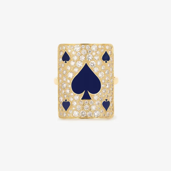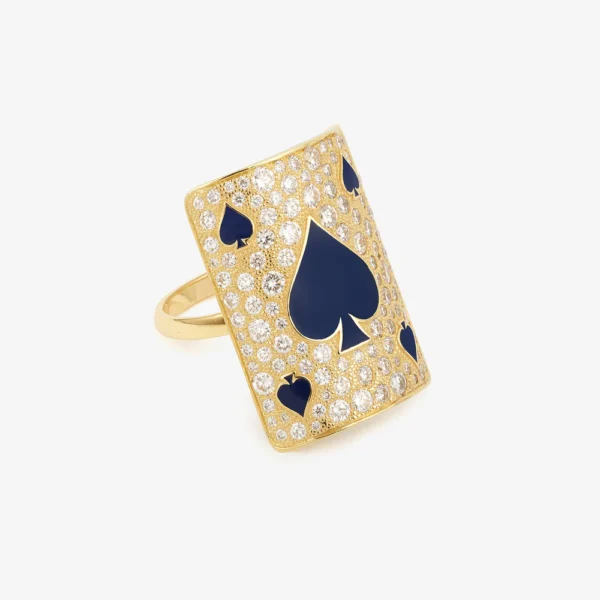 El oro amarillo se funde con la laca azul en una danza etérea y armoniosa. 101 diamantes cultivados en laboratorio, como estrellas brillantes, iluminan esta joya talismánica. Inspirado en la energía de Géminis, Libra y Acuario, el Gigante Justicia celebra la inspiración, la comunicación y la libertad de espíritu.