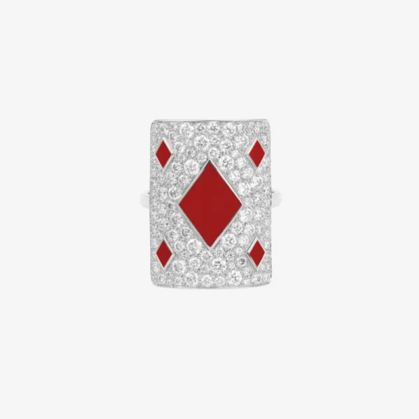 La laca roja, símbolo de pasión y energía, realza el anillo GIGANTE HONREUR ROJO. Como un brasero ardiente, evoca la fuerza y la determinación de los signos de Fuego.