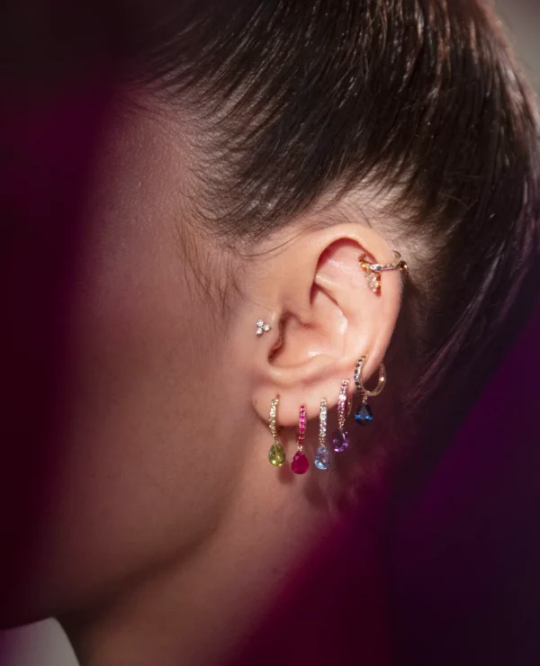 Así, en la colección Piercing by Persée, la piedra natural se realza a través de un mini pendiente que es a la vez precioso y rebelde.
