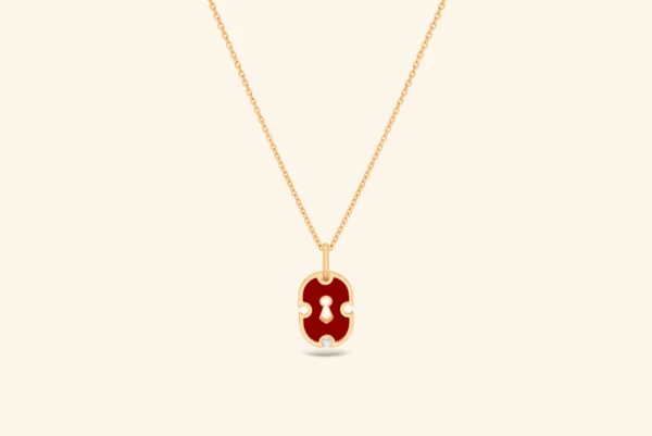 Rouvenat – Colgante Pequeño Unlock, oro amarillo, cerámica roja, diamante – Ref.: UL1_3_J_J_13_DIA
