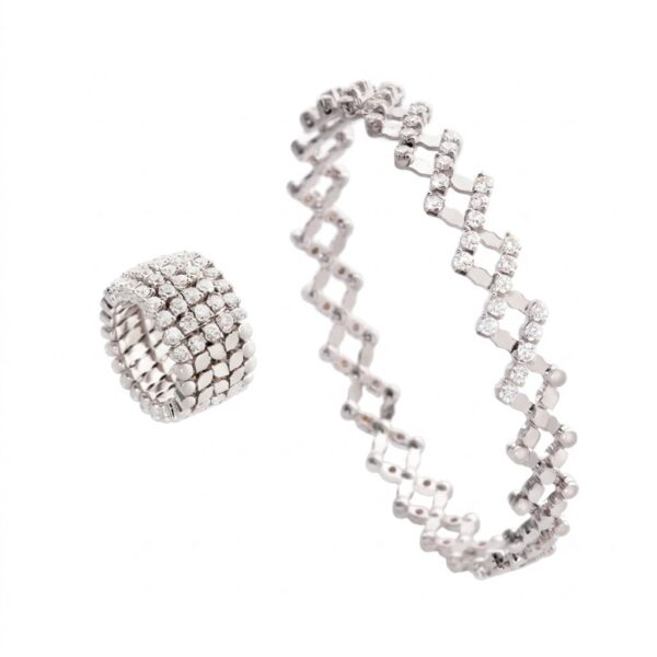 Anillo Pulsera flexible de 5 filas con diamantes y oro Blanco