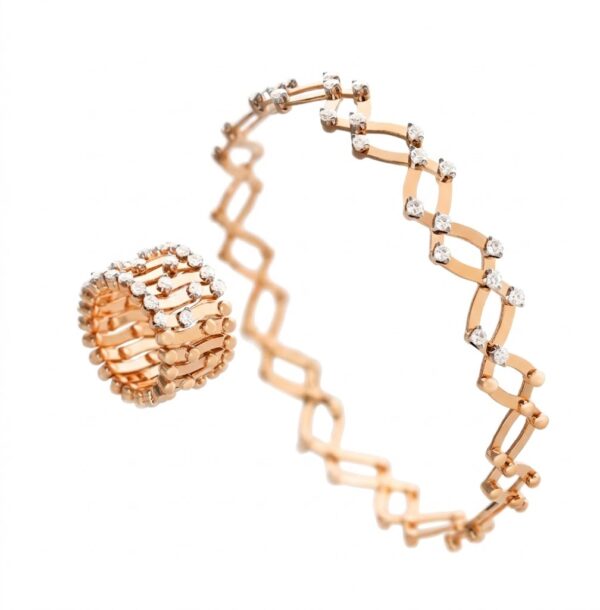 Anillo Pulsera flexible de Oro Rosa con diamantes